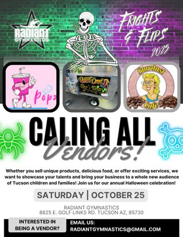 Want to be a vendor at our event? Send us an email! RadiantGymnastics@gmail.com